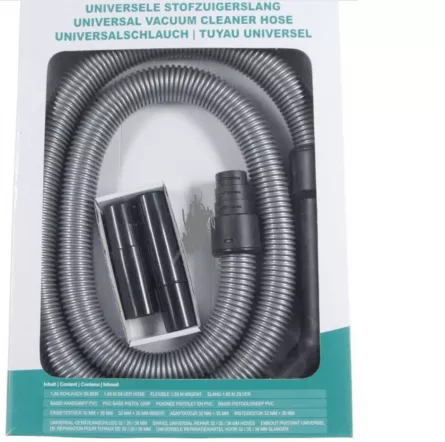 Lungime: 1,8m, Culoare: negru / gri deschis, Diametru furtun: 40mm, Diametru conectare aparat: 28mm, Diametru conectare tub telescopic: 32mm, Conectare: drept, Caracteristici speciale: mâner